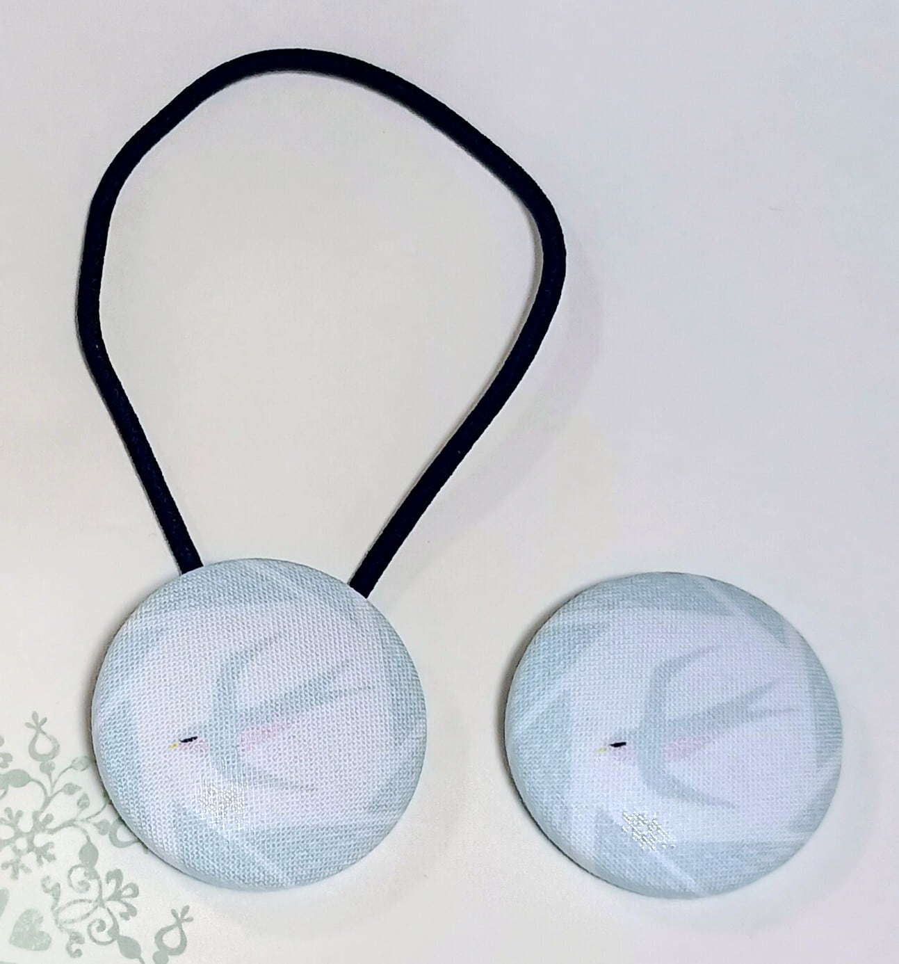 直径38mmの、軽い素材で作ったツバメのヘアゴムです。 淡い色合いでさりげなく…! ゴムが切れたり伸びたりしたら、ご自身で簡単に付け替えられます。裏面は画像2枚目参照。 ゴムの色はネイビーか黒でお届けします。