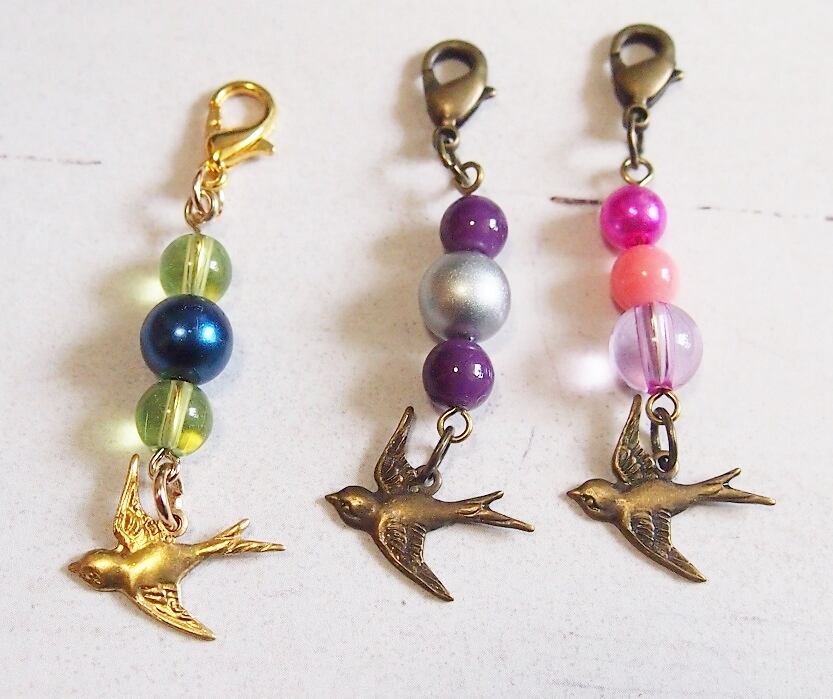 グリーン&ネイビーのみツバメと金具が金色、他の二色はツバメと金具が金古美です。